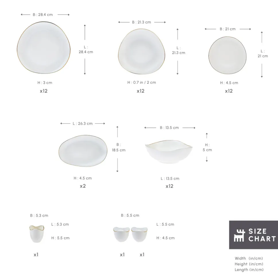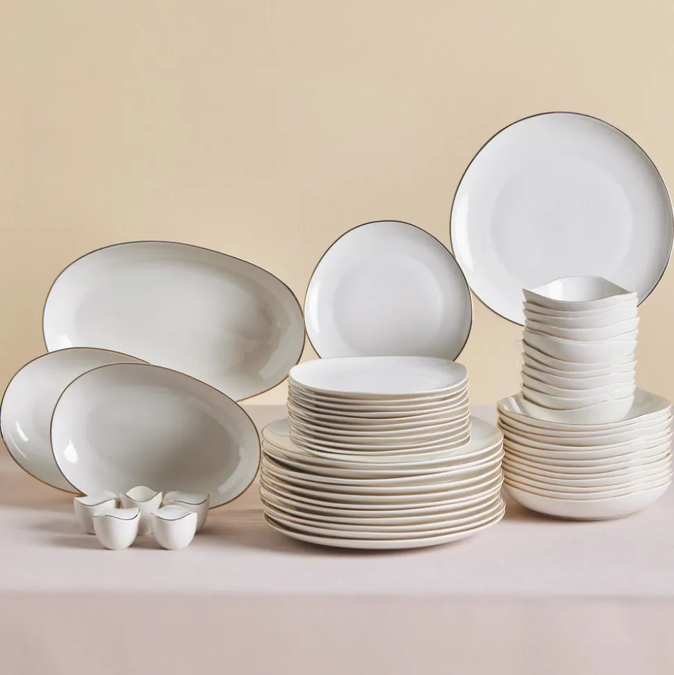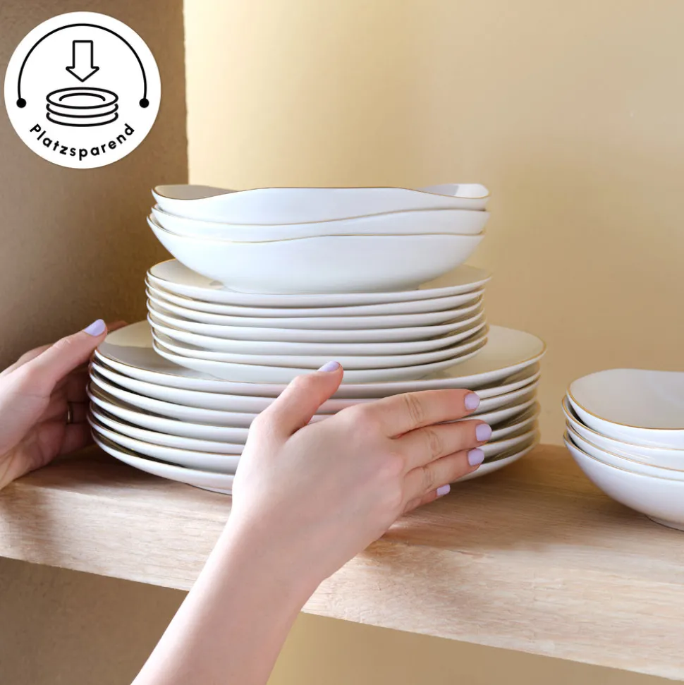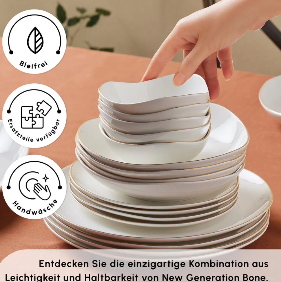 Karaca Stream Bone Middle 53-teiliges Tafelservice für 12 Personen Gold