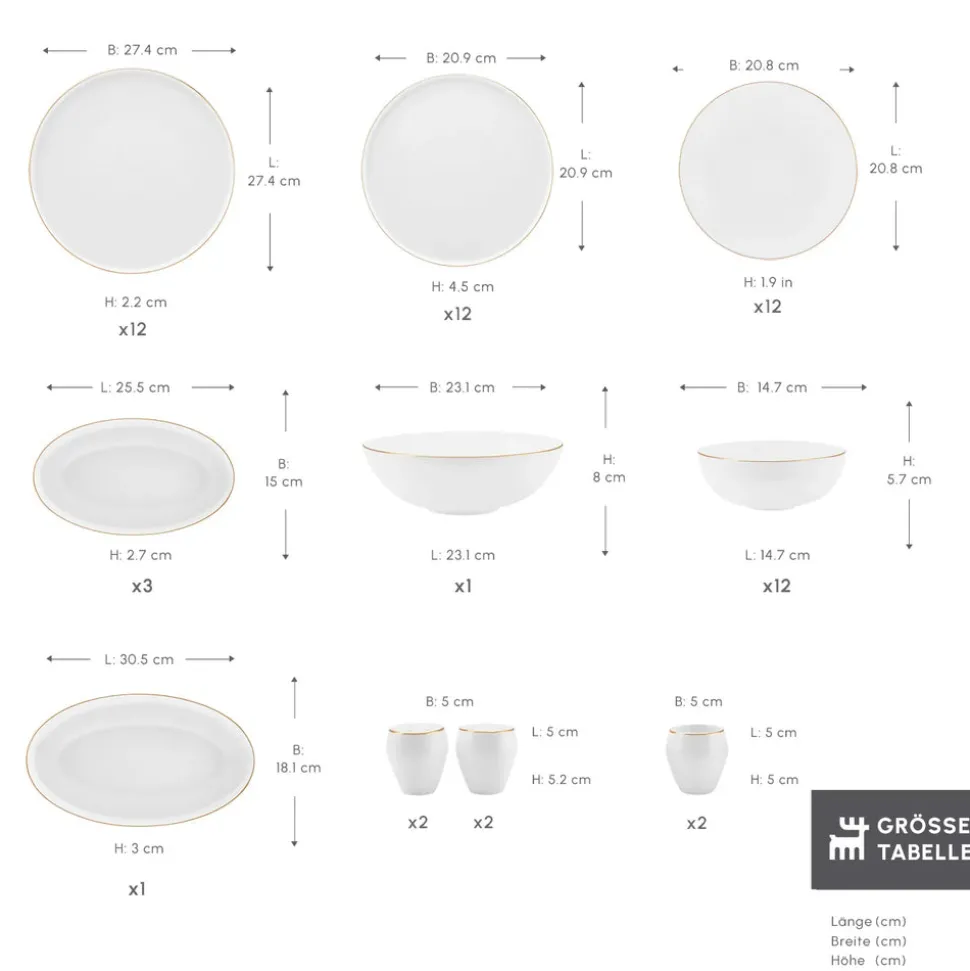 - 12 Essteller (21,6 cm)