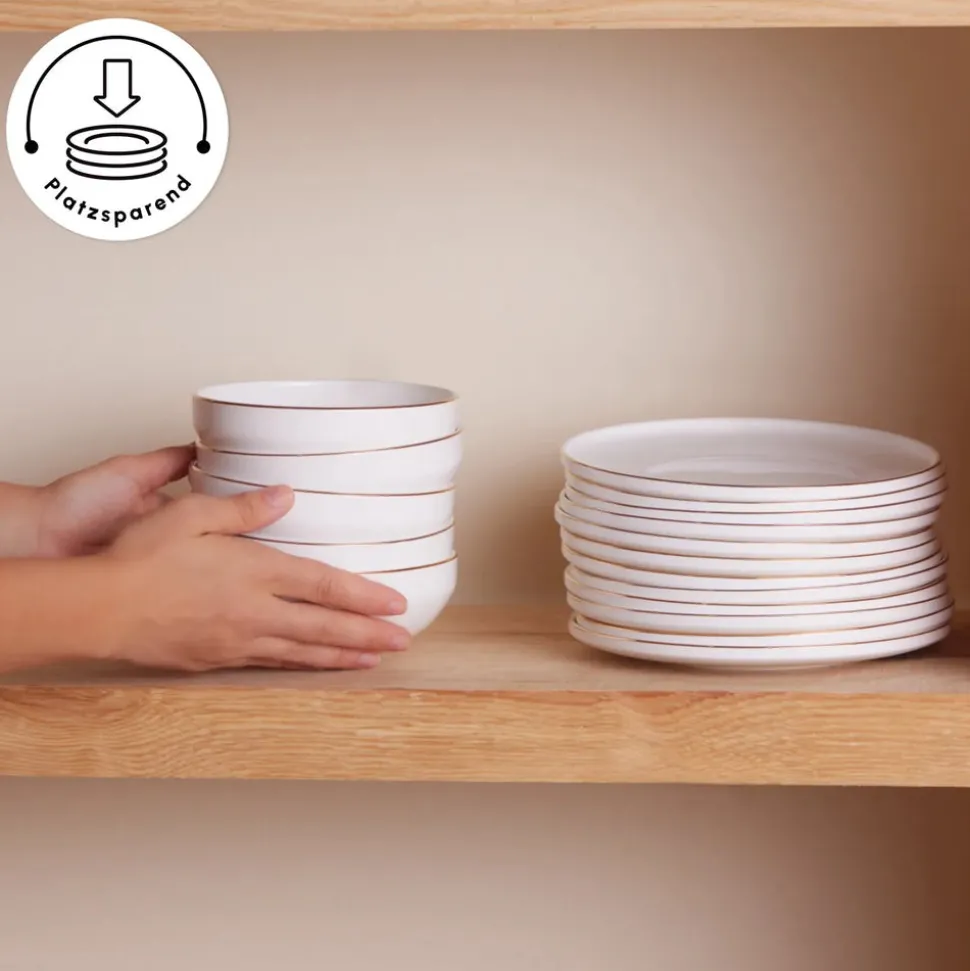 Karaca Stream Bone New Meridian 59-Teiliges 12-Personen Geschirrset Gold