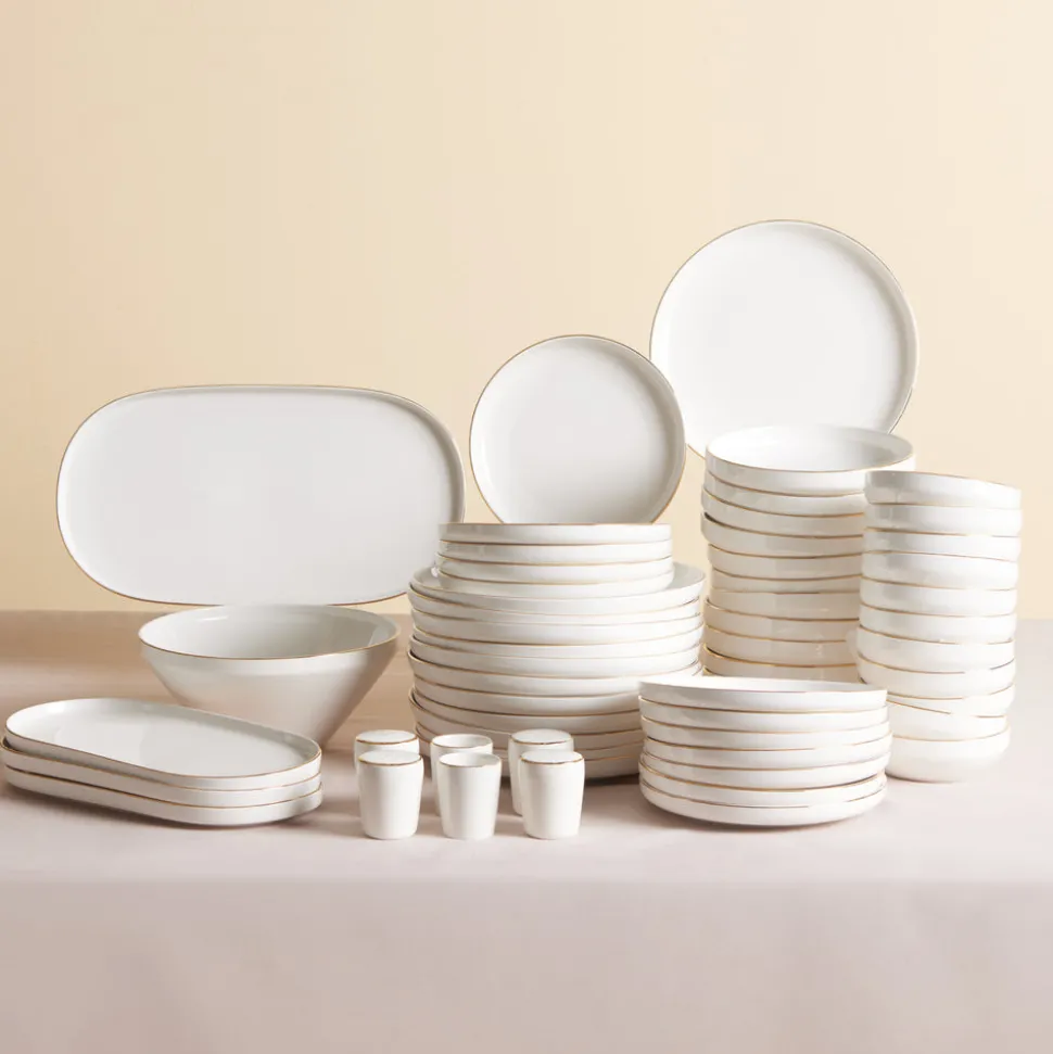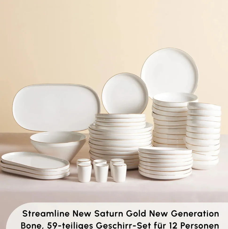 Karaca Stream Bone New Saturn 59-Teiliges 12-Personen Geschirrset Gold