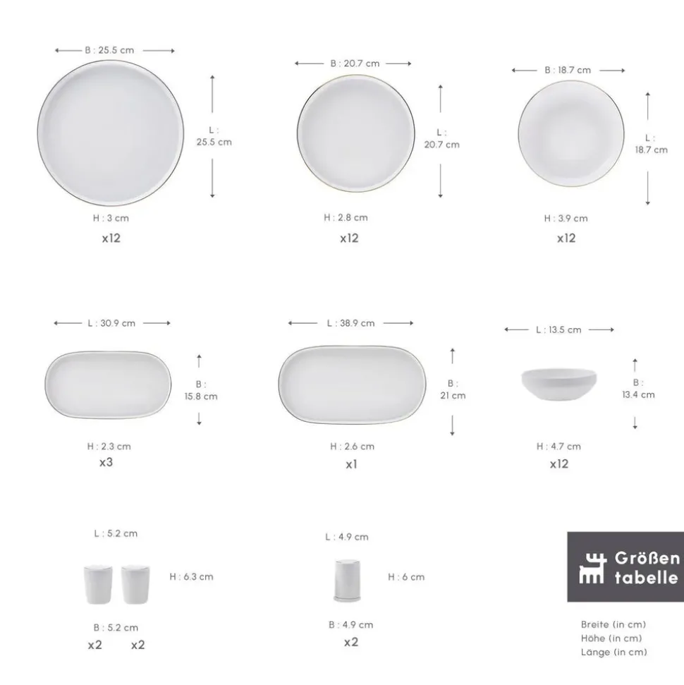 Das 60-teilige Tafelservice Karaca Streamline New Saturn Gold für 12 Personen verleiht Ihren Präsentationen eine einzigartige Eleganz und unterstreicht mit seiner außergewöhnlichen, organischen und modernen Form die Schlichtheit der Tafeln, die Sie für Ihre Liebsten vorbereiten. Durch sein schlichtes, ungemustertes Design lässt es sich mit Besteckgarnituren in jedem Stil kombinieren. Das Tafelbesteck Streamline New Saturn Gold, das Sie getrost für Ihre Einladungstische verwenden können, ist auch für den täglichen Gebrauch ideal. Für einen kompletten und stilvollen Tischauftritt enthält das Set 12 Essteller, Servierplatten, Kuchenteller und -schalen sowie kleine und große Schiffchen, Gewürzhalter und viele Schalen, die Sie in der Mitte des Tisches verwenden können.