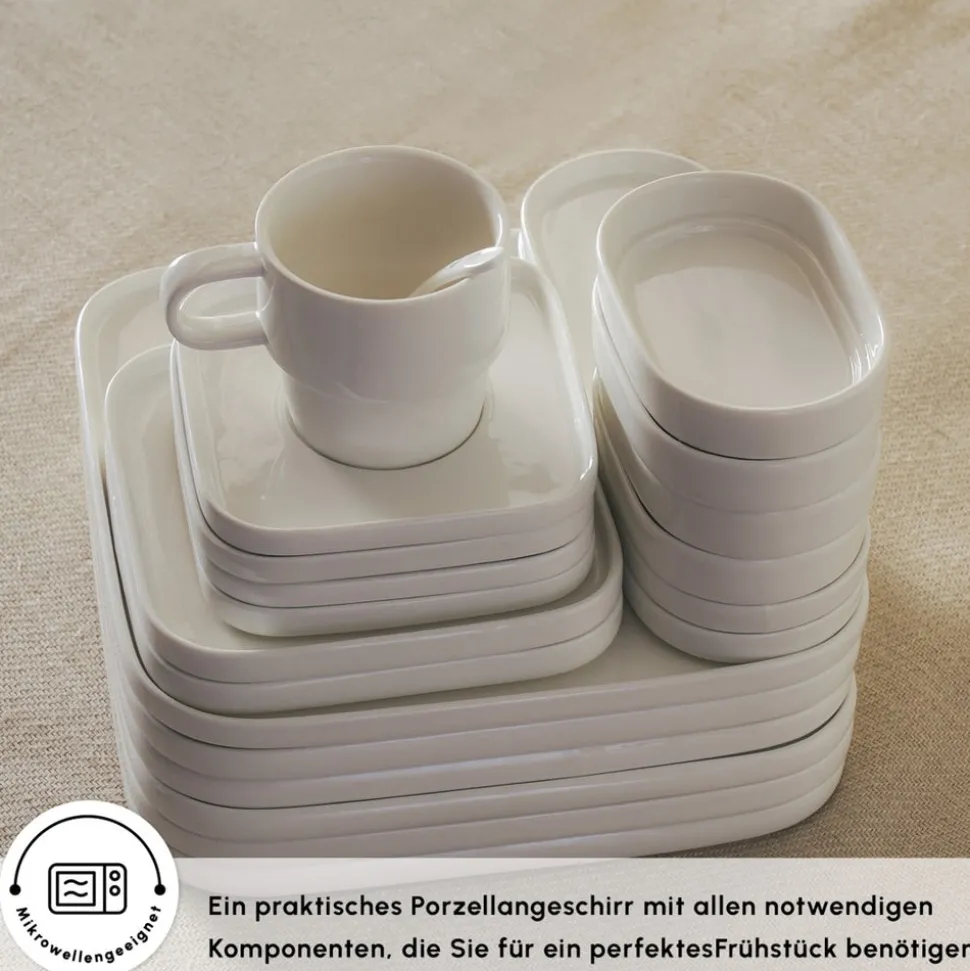 Das 35-teilige Frühstücksservice Cubique von Karaca ist eines der seltenen Designs, das seine Eleganz aus seiner Schlichtheit bezieht. Cubique, ein schönes Frühstücksset mit quadratischem Design, ist für intime Frühstückstische für 6 Personen gedacht. Die Ecken der quadratischen Teller sind oval und verleihen ihnen ein ästhetisches Aussehen. Neben dem Tee- und Frühstücksservice für 6 Personen besteht es aus 2 Olivenhaltern, 2 Käsetellern, 1 Salzstreuer, 1 Pfefferstreuer, 1 Zahnstocherhalter. Es hat eine appetitanregende Schönheit mit seiner weißen Farbe, die für Reinheit steht. Es kann immer verwendet werden und kann die schönsten Momente begleiten. Es eignet sich für Ihre Frühstückstische, die mit köstlichen Aromen zubereitet werden.