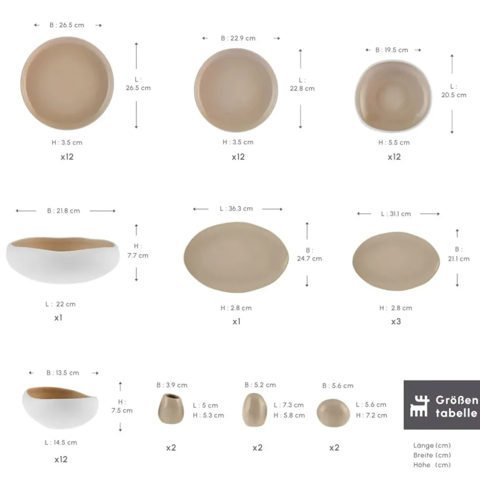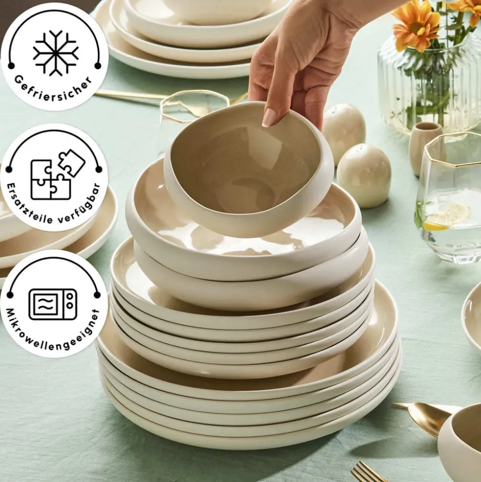Karaca Streamline Cupid für 12 Personen Geschirr Set, 59 Teilig, Stoneware