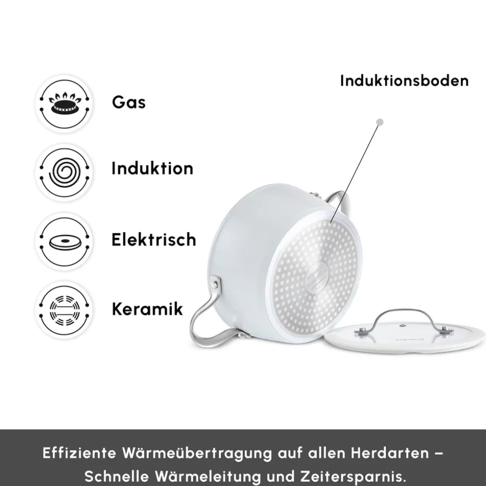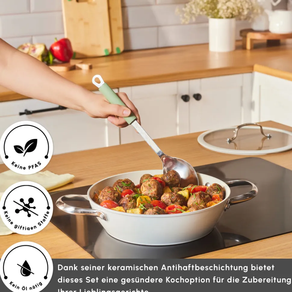 Ein brandneues Pfannenset mit hervorragenden Antihafteigenschaften: SwissCrystal Das Karaca SwissCrystal Pfannenset, das seine Stärke aus der antihaftbeschichteten SwissCrystal Oberfläche bezieht, bietet Ihnen die Möglichkeit, eine Reihe von Gerichten auf praktische Weise zuzubereiten, wie z.B. Eier, Fisch, Hähnchen, und das ganz ohne Öl. Die antihaftbeschichtete Oberfläche wird mit Schweizer Kristallen hergestellt und enthält keine gesundheitsgefährdenden chemischen Verbindungen wie „PFAS“, die die Gesundheit beeinträchtigen. Zudem ist das SwissCrystal Pfannenset leicht zu reinigen! Egal, welches Gericht Sie zubereitet haben, es genügt, es kurz unter Wasser zu halten. Die essentiellen und praktischen Eigenschaften des SwissCrystal Pfannensets erleichtern Ihnen die Zubereitung schmackhafter Gerichte und sorgen für eine einfache Handhabung in Ihrer Küche.