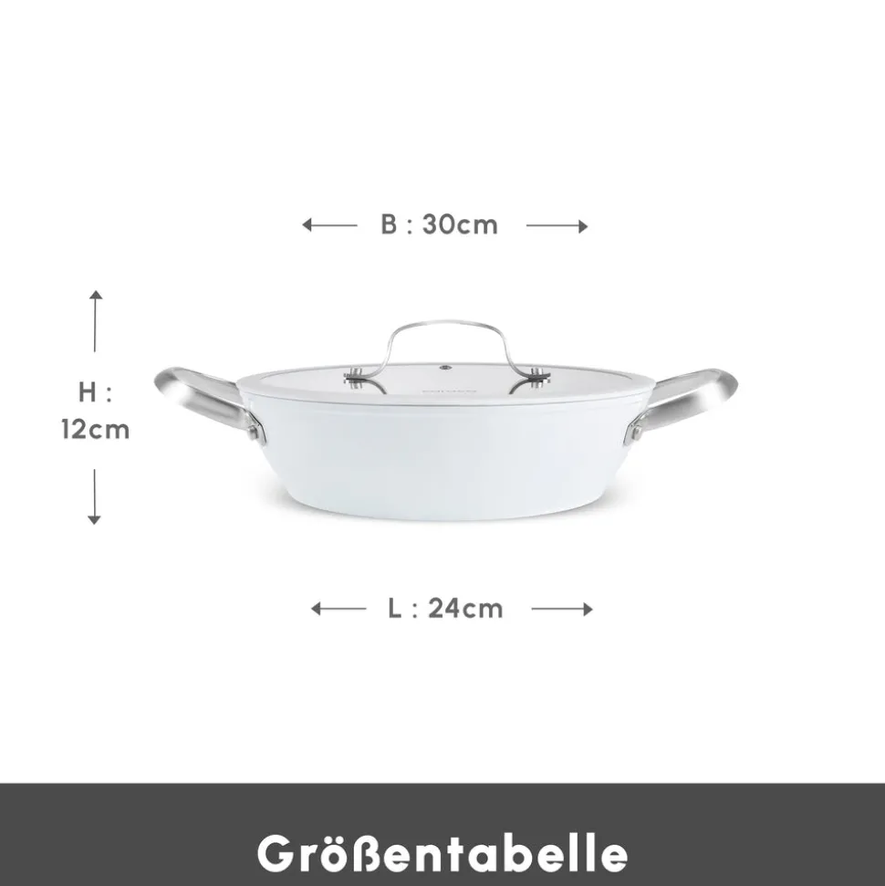 Karaca Swiss Crystal Almond Cream Handle Flache Kasserolle 30 cm