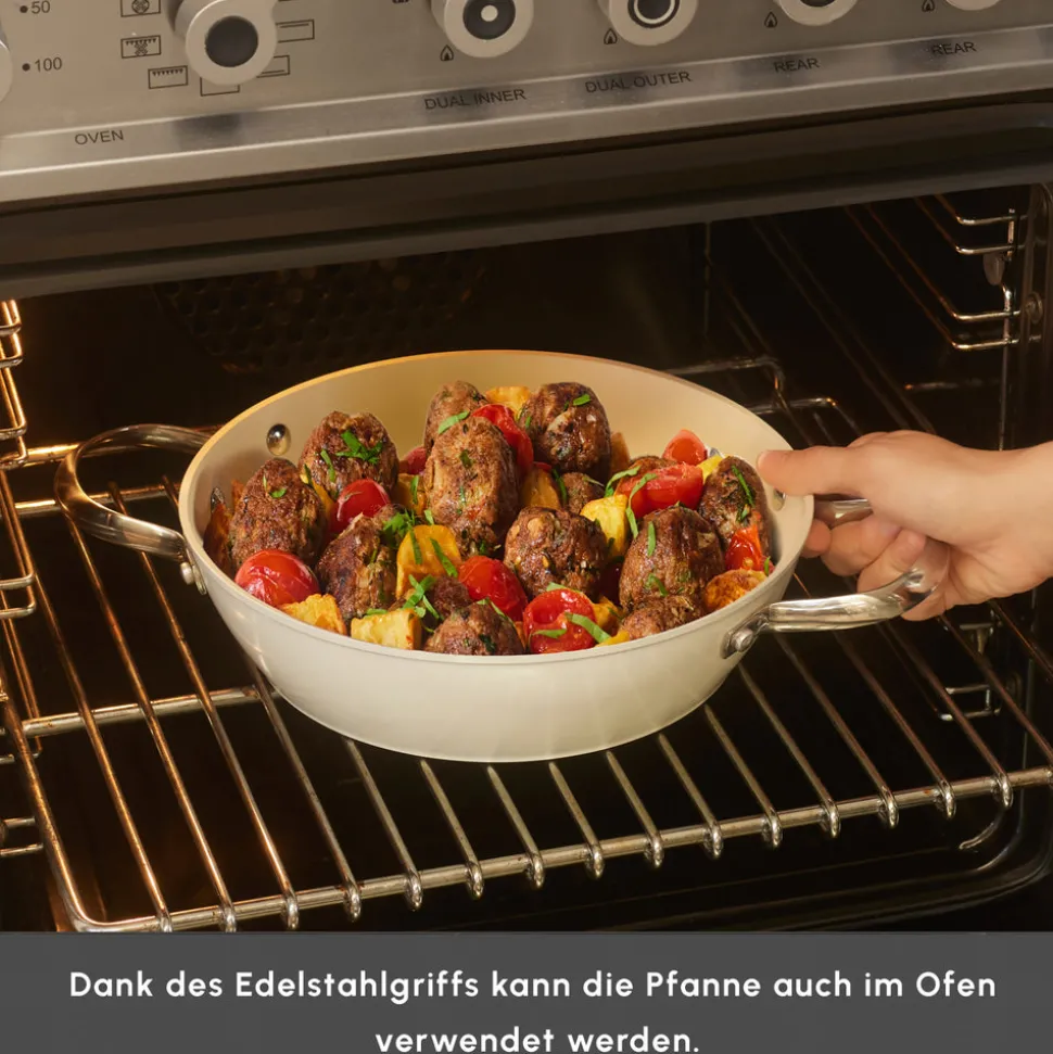 Darüber hinaus ist das SwissCrystal Pfannenset äußerst leicht zu reinigen! Egal, welches Gericht Sie zubereitet haben – kurzes Abspülen unter Wasser genügt. Die essenziellen und praktischen Eigenschaften des SwissCrystal Pfannensets erleichtern die Zubereitung köstlicher Speisen und sorgen für eine komfortable Handhabung in Ihrer Küche.