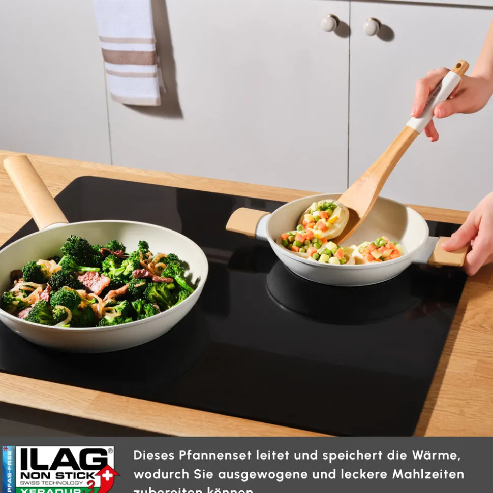 Karaca Swiss Crystal Almond Cream, Pfannen Set, Induktion