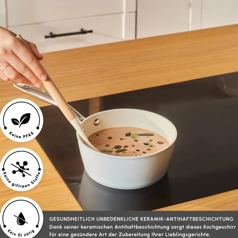 Karaca Swiss Crystal Almond Cream Stielkasserolle mit Edelstahlgriff 18 cm