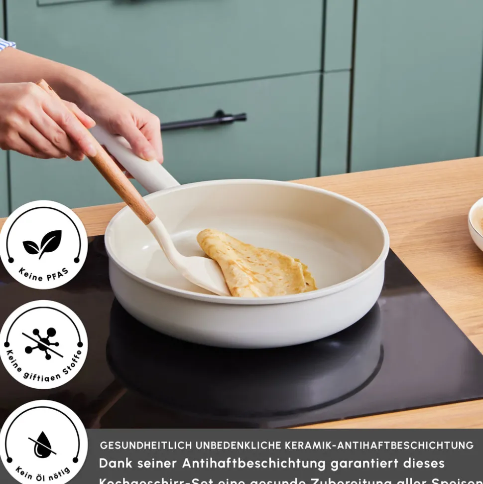 Das 7-teilige Valenti Ceramica Kochgeschirr verfügt über eine hervorragende Antihaftbeschichtung, die es Ihnen ermöglicht, Gerichte