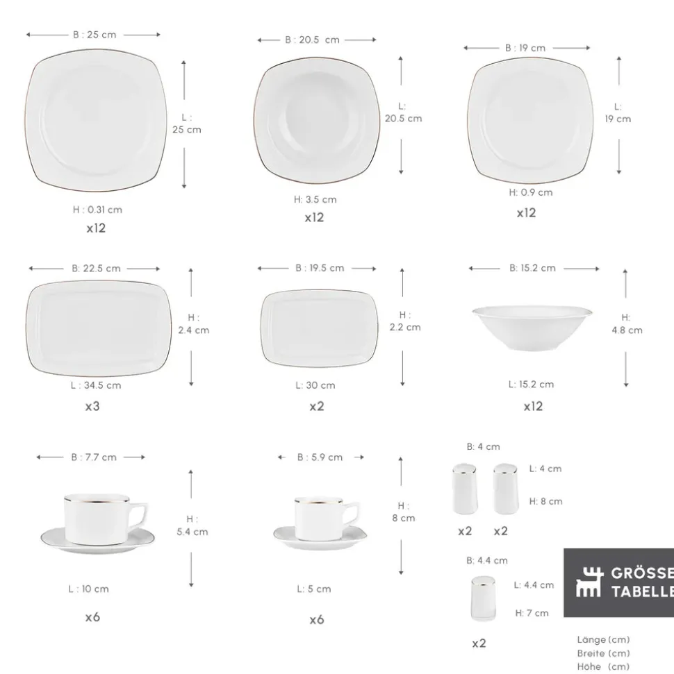Karaca Timeless Gold Square Geschirr-Set für 12 Personen, 84-teilig