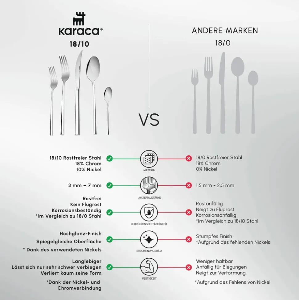 Der qualitativ hochwertige Edelstahl ist nicht nur ein sehr hygienisches Material für Küchenutensilien aller Art, auch optisch legen Sie damit einen glänzenden Auftritt hin. Neben dekorativen Tellern rundet dieses Edelstahlbesteck den Gesamteindruck Ihrer Tafel harmonisch ab. Perfekter können Sie Ihren Gästen nicht auftischen.
