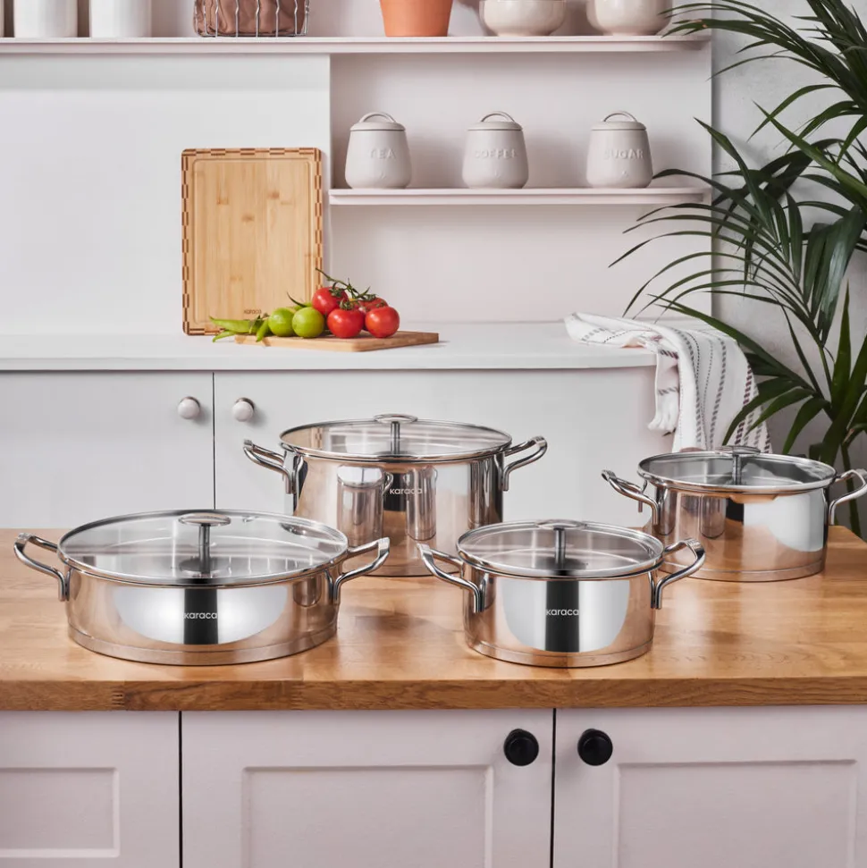 Karaca Vapor 8-teiliges Edelstahl-Topfset mit Sieb
