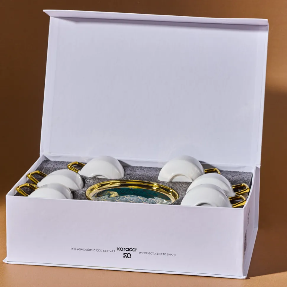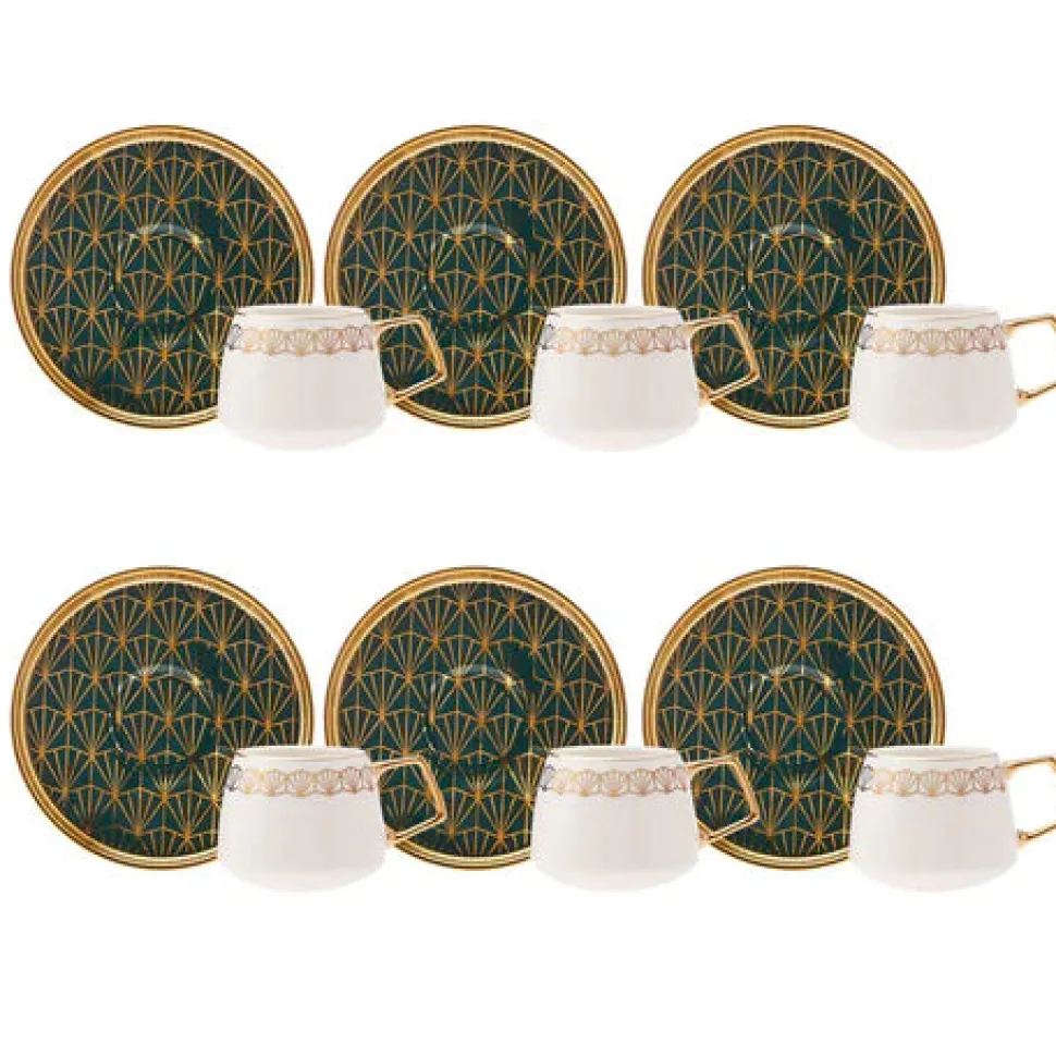 Karaca Verde 12-teiliges Porzellan Espresso Türkischer Kaffeetassen-Set für 6 Personen, 100 ml, Mehrfarbig