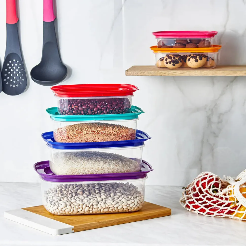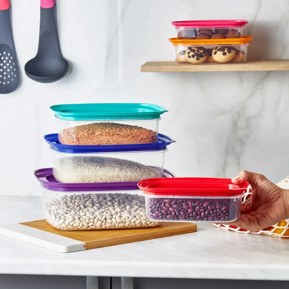 Wir achten auf Ihre Gesundheit! Unsere Kunststoffbehälter werden sorgfältig als BPA-frei hergestellt, indem wir Kunststoff der Art 6 verwenden. Mit unseren platzsparenden Kunststoffbehältern wird Ihre Küche größer wirken. Sie können sie sicher für Ihre schönsten Tische und angenehmsten Momente verwenden, geeignet für alle von 7 bis 70 Jahren. Sie können auch Ihre Hülsenfrüchte bequem in unseren Kunststoffbehältern lagern. Wenn die Menge Ihrer Hülsenfrüchte abnimmt, können Sie sie zur längeren Aufbewahrung in kleinere Behälter umfüllen. Um die Lebensdauer Ihrer Lebensmittel zu verlängern, empfehlen wir, unsere Kunststoffbehälter an Orten fern von direktem Sonnenlicht, Herden und Wasserhähnen zu lagern.