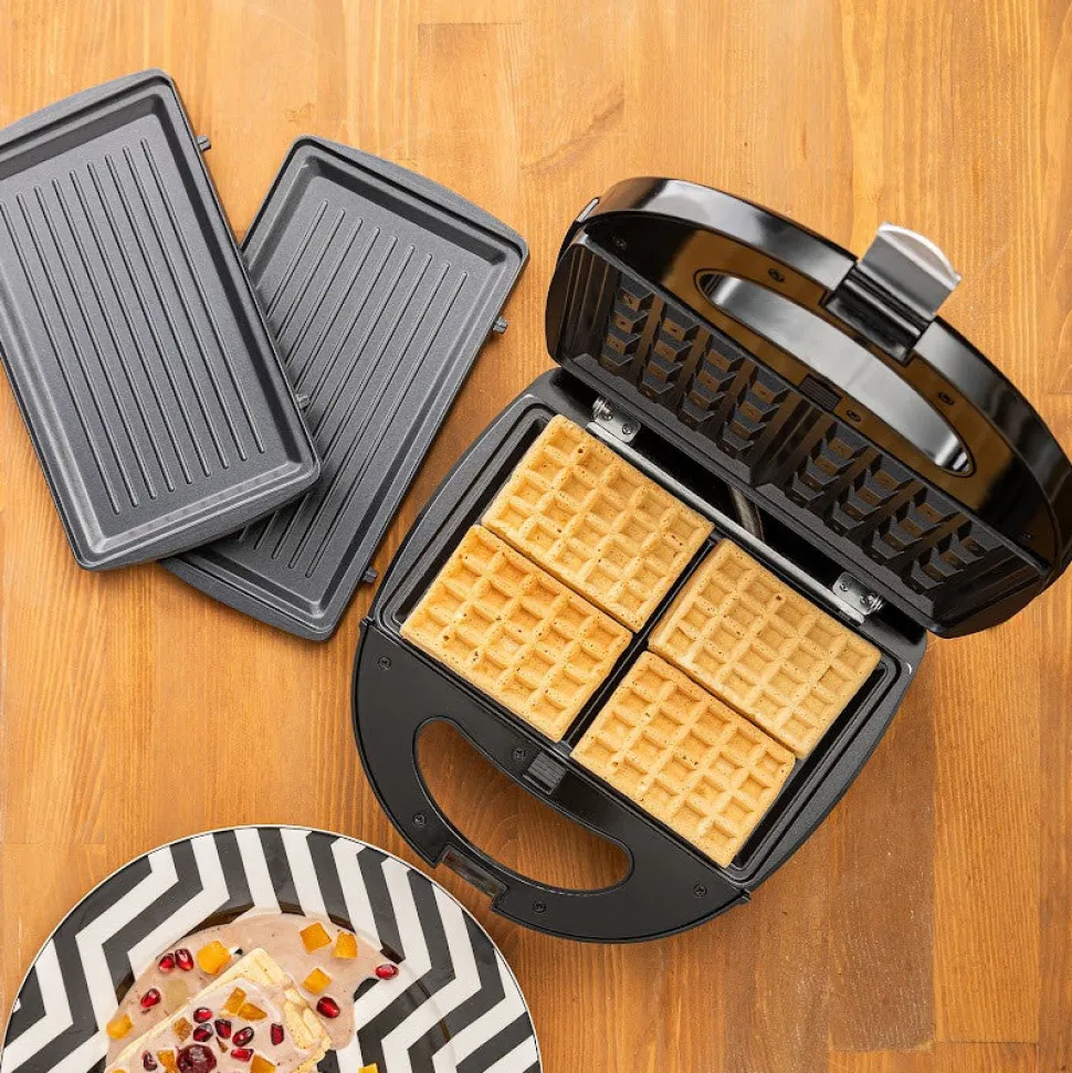 Bietet nicht nur Grillen und Toasten, sondern auch die Möglichkeit, Waffeln zuzubereiten.