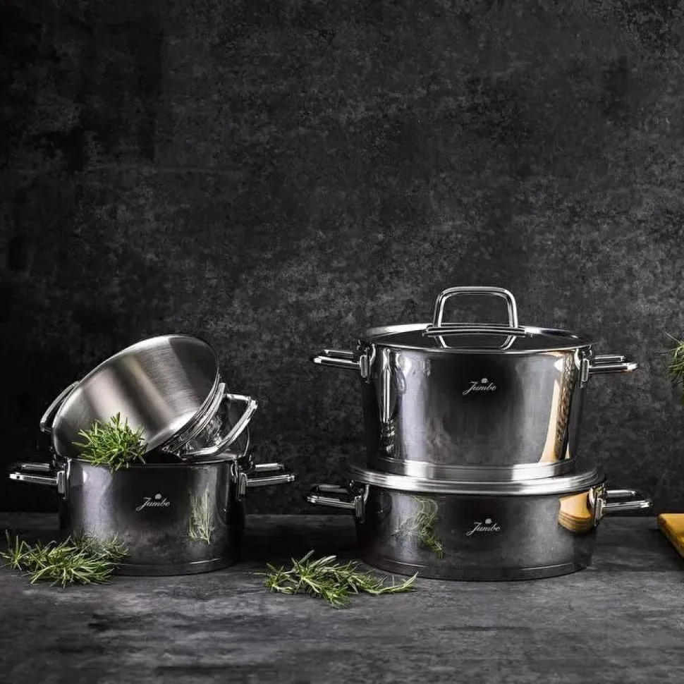 Jumbo Felix 8-teiliges Edelstahl-Topfset mit Induktionsboden