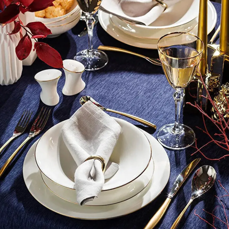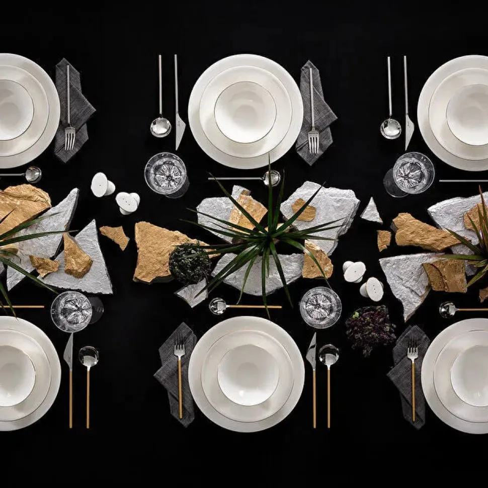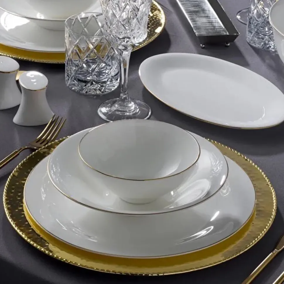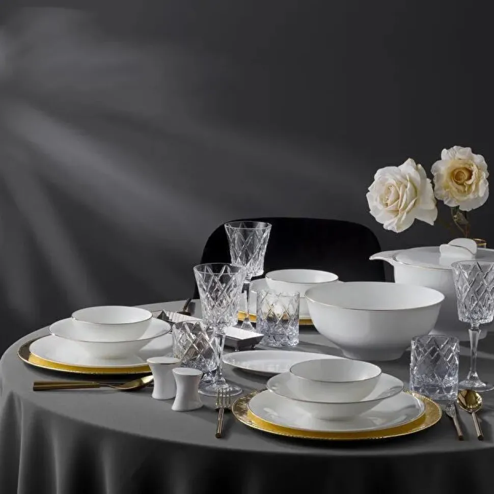 Das Golda Service vereint Funktionalität und Stil. Die goldenen Details verleihen dem Set einen edlen Charakter, der zu verschiedensten Besteck- und Glasserie-Kombinationen passt. Ob für den Alltag oder besondere Anlässe – dieses langlebige und ästhetische Service ist eine Bereicherung für jedes Zuhause.
