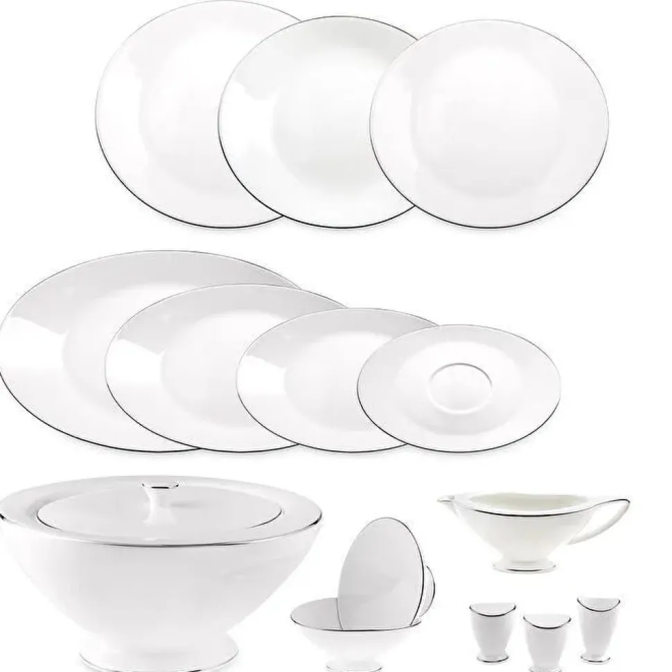 Das Moon Platin Service besticht durch sein schlichtes, modernes Design. Das reine Weiß mit dezenten dunklen Rändern macht es zum Highlight moderner Tische. Mit seinen 64 Teilen bietet es die perfekte Ausstattung für Suppen, Hauptgerichte, Vorspeisen und Desserts.