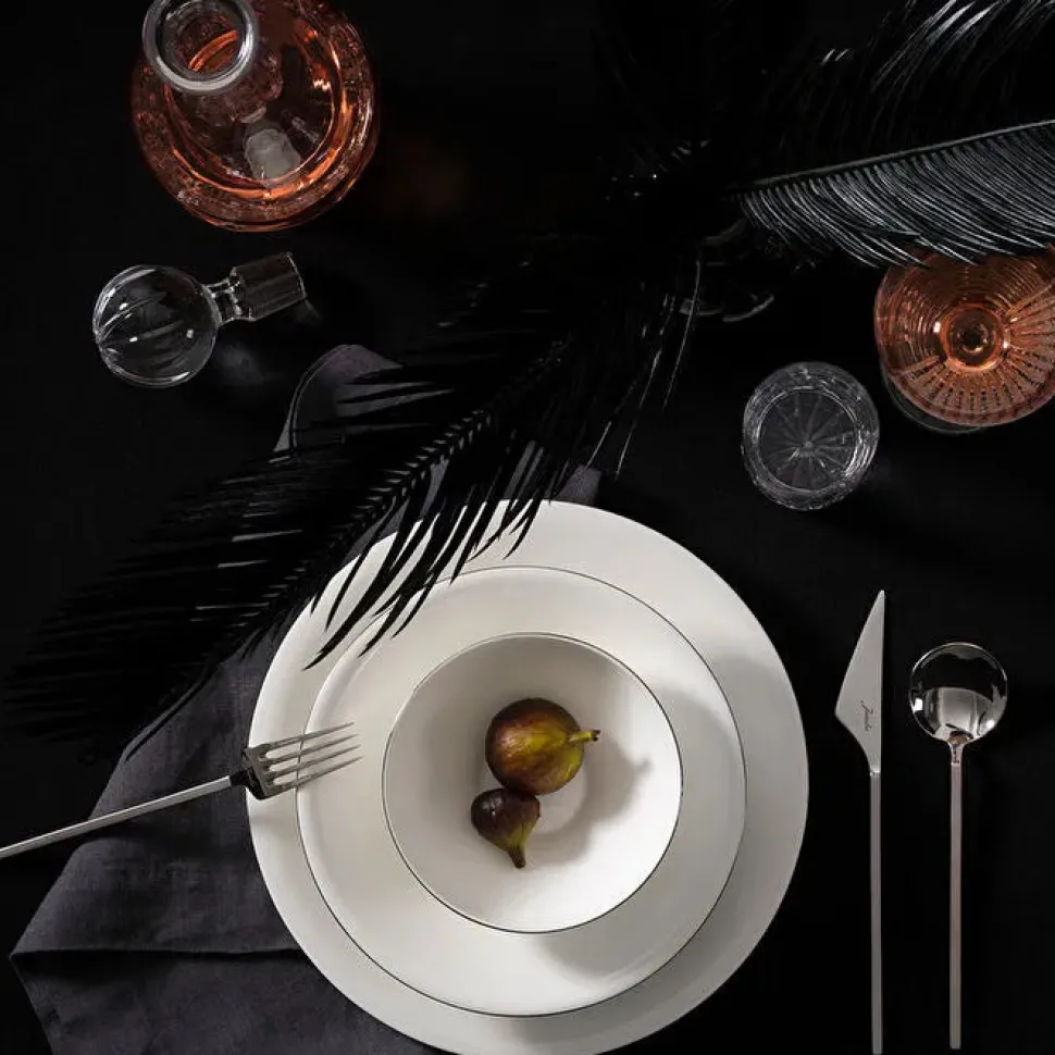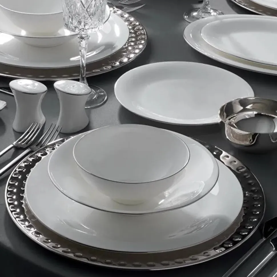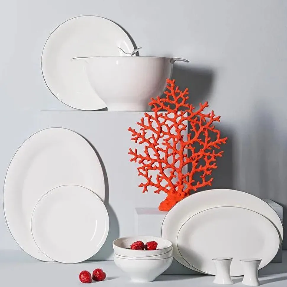 Das Jumbo Silva Tafelservice ist das Herzstück jeder stilvollen Tischdekoration. Mit seinem eleganten und minimalistischen Design passt es perfekt zu modernen wie klassischen Einrichtungen. Die ovalen Formen und die feine Bone-China-Struktur verleihen dem Set einen edlen Charakter, der jeden gedeckten Tisch aufwertet.