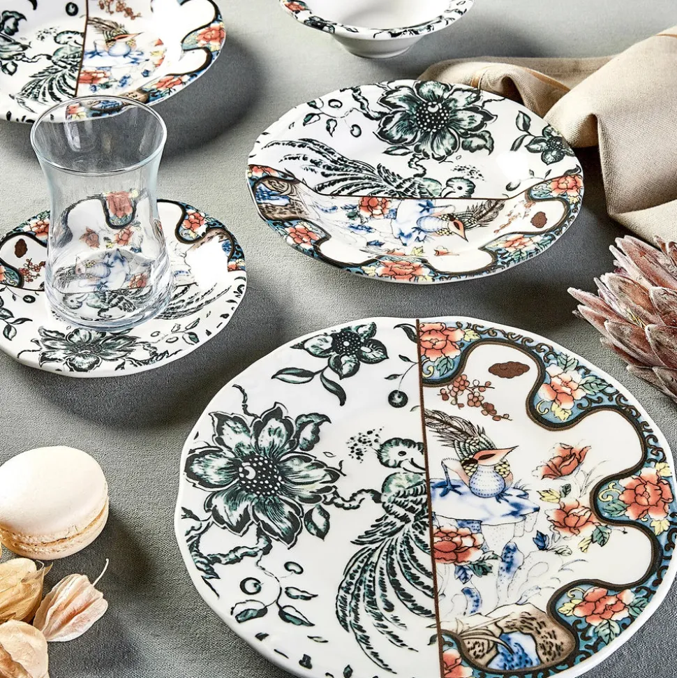 Dieses Produkt erhält seine Form und Farbe durch weißen Kaolinton, sein glasiges Aussehen durch Quarzgestein und seine harte und dauerhafte Struktur durch Feldspatmineralien.–Überlegene Widerstandsfähigkeit – Es ist kratzfest dank seiner harten Struktur, die durch die Glasur bei 1200 °C gebildet wird, die höher ist als die Glasurtemperatur von Keramik. Es wird durch Säure nicht beeinträchtigt. -Keine Porosität und keine Rissbildung – Aufgrund seiner geringen Porosität ist es resistent gegen Rissbildung. Daher nimmt es kein Wasser auf und beherbergt keine Bakterien. Es weist weder Geschmack noch Geruch auf. – Bleifrei – Es ist gesund, weil es keine Schwermetalle wie Blei enthält.—— Reinigung und Pflege —— Leicht zu reinigen. –Dank seiner Wasserdichtigkeit ist es hygienisch.- Dank seiner langlebigen Struktur kann es in der Mikrowelle und im Gefrierschrank verwendet werden.– Es wird bei der Reinigung in der Spülmaschine nicht beschädigt. — Dank seiner natürlichen Struktur bewahrt es die Temperatur der Nahrung für lange Zeit.– Welche Punkte sollten bei dauerhaftem Gebrauch beachtet werden?– Es sollte keinem direkten Feuer ausgesetzt werden. — Beim Übereinanderstapeln und der Aufbewahrung Ihrer Produkte tragen Sie zum Schutz Ihrer Produkte bei, indem Sie eine weiche Trennwand wie Papier und Stoff dazwischen legen.
