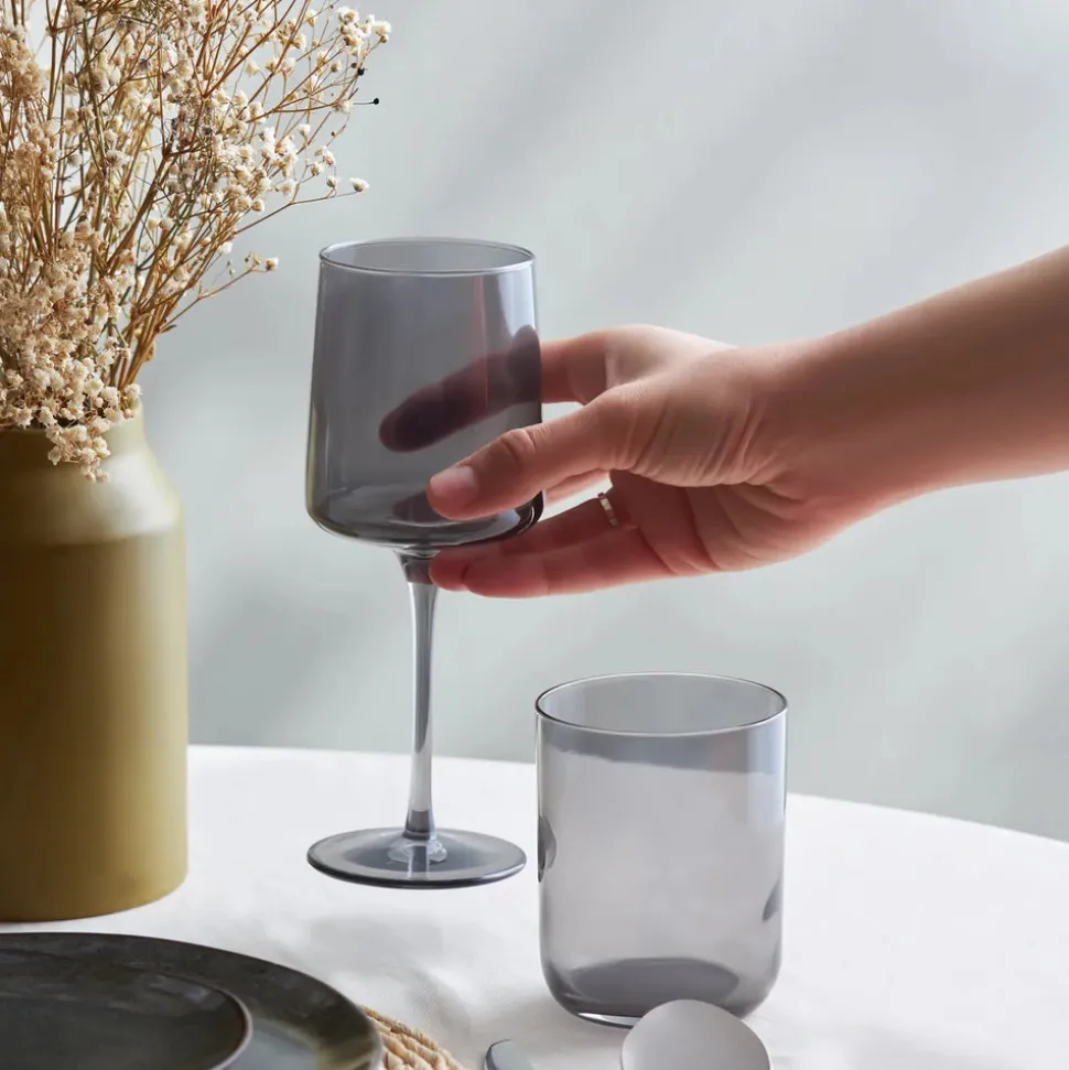 Karaca Anthrazit Weinglas-Set, 3 teilig