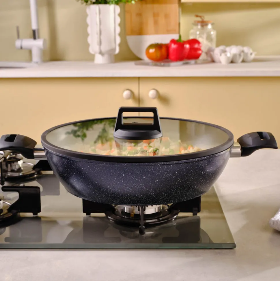 Die Produkte der Aqua-Serie verbessern den Geschmack Ihrer Mahlzeiten, indem sie die Hitze gleichmäßig verteilen. Die Marmorbeschichtung, die sich durch maximale Hitzebeständigkeit und Antihafteigenschaften auszeichnet, erleichtert die Reinigung dank ihrer Fleckenbeständigkeit.