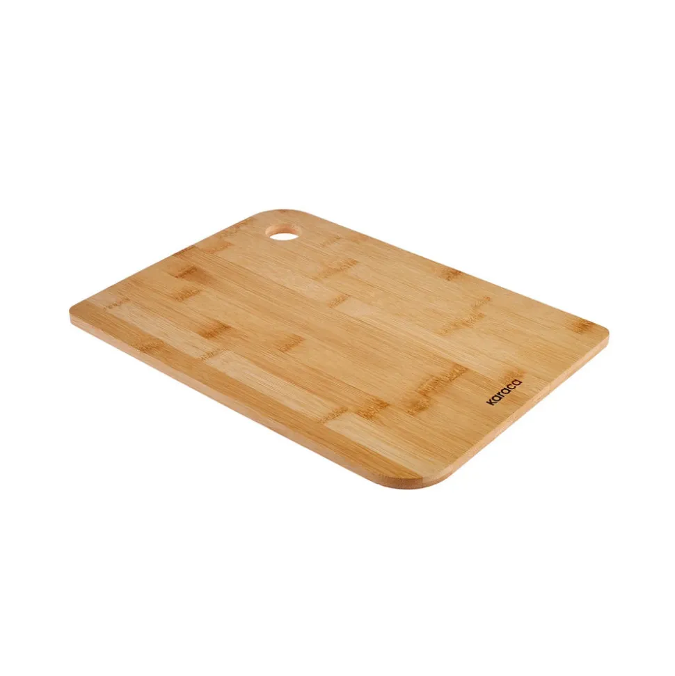 Das Bambusbrett in Wasser eintauchen oder darin stehen lassen. Das Holz nimmt Wasser auf und kann sich verziehen.