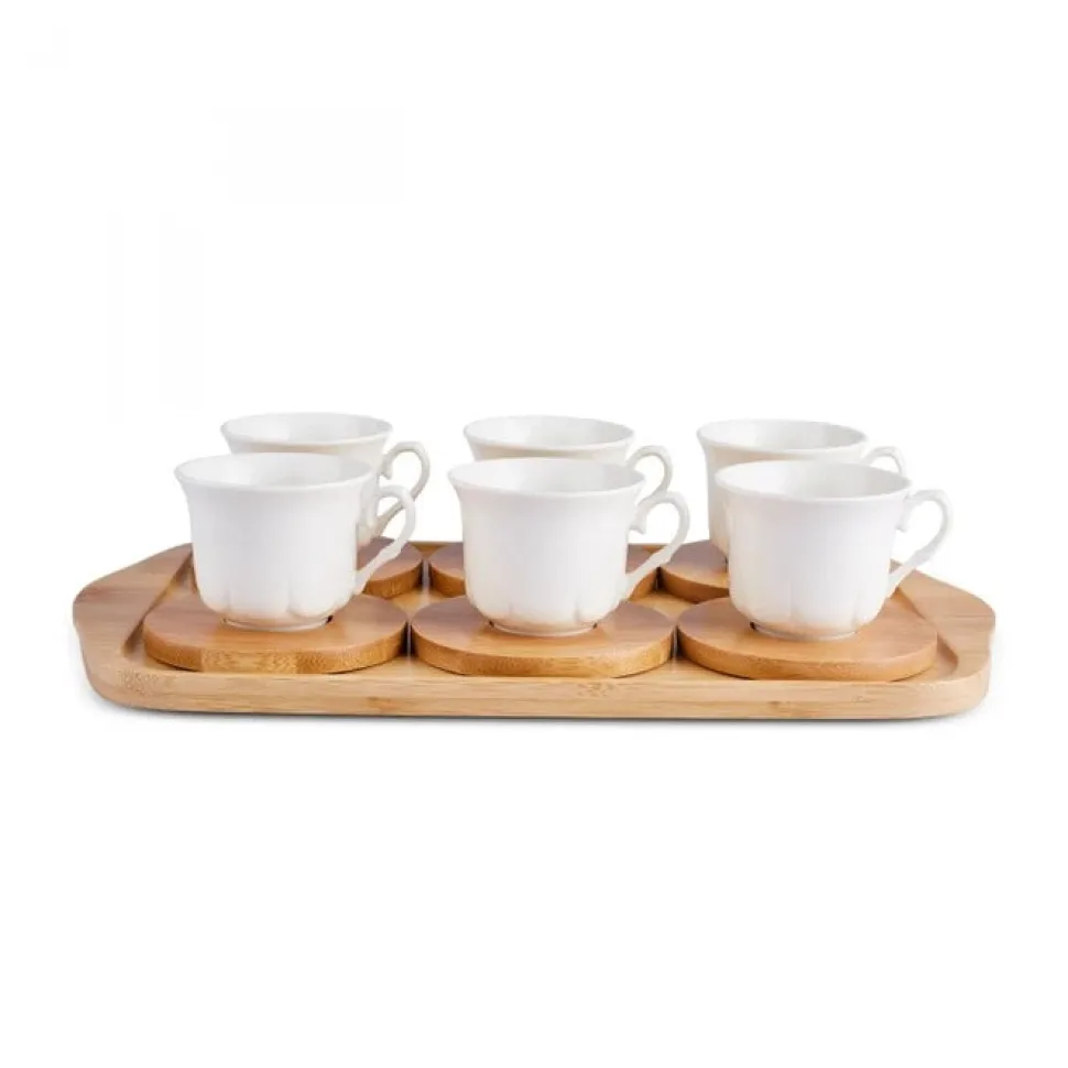 Karaca Bambus-Tablett 6-Personen-Kaffeetassen-Set, 90 ml