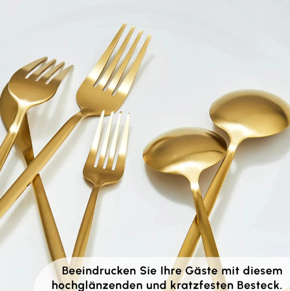 Karaca Bella Matte Gold Besteck Set für 6 Personen, 24 Teilig