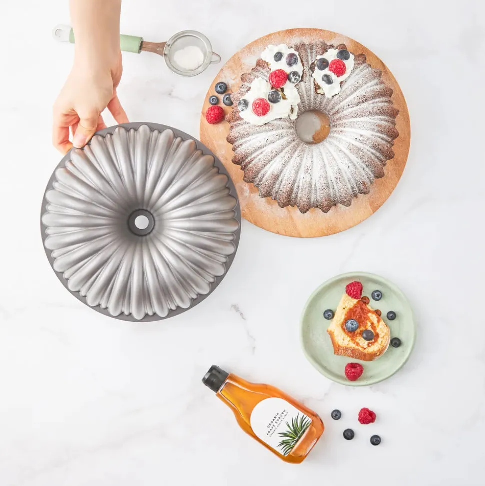 Dank ihres Aluminiumgusskörpers bietet sie eine hohe Haltbarkeit und verteilt die Wärme schneller und gleichmäßiger als andere Materialien. So gart sie Ihren Kuchen gleichmäßig und in voller Konsistenz von außen nach innen.