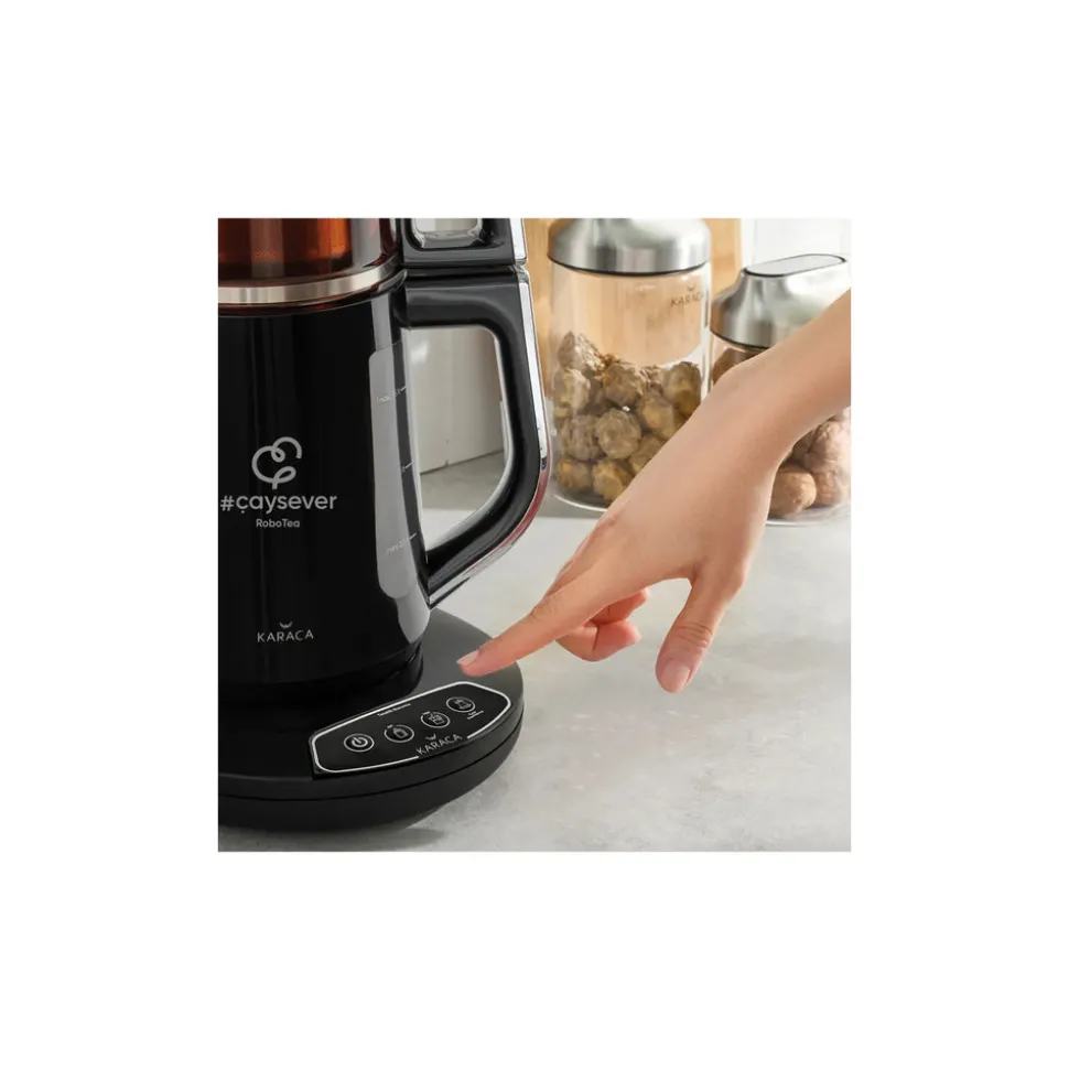 Karaca Caysever Robotea Teemaschine und Wasserkocher mit 2500 Watt Heizleistung in Schwarz mit Akzenten in Chrom