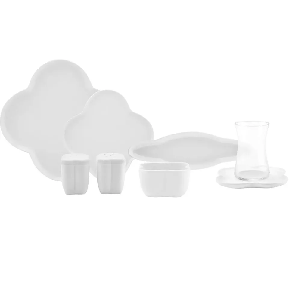Karaca Clover Porzellan 6 Personen Frühstücksset und Servierschalen, 28 Teilig