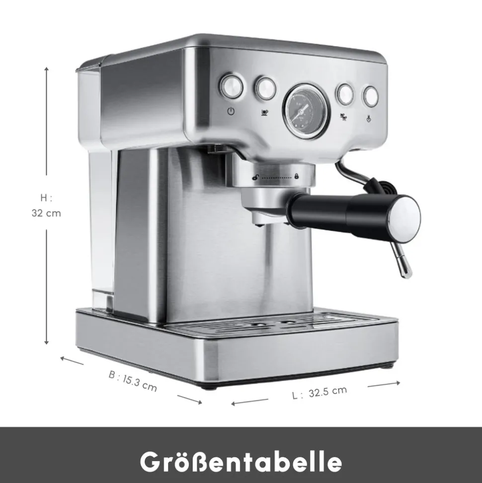 1350W Leistungsstarke Heizung Ihre Coffee Art 1353 Espressomaschine ist mit einer Leistung von 1350W ausgestattet, die eine schnelle Bereitschaft zur Kaffeezubereitung gewährleistet.