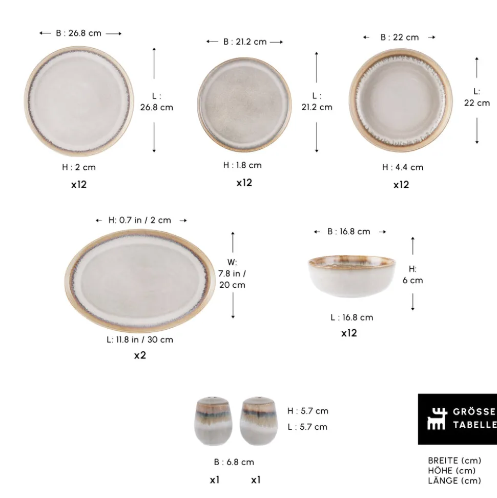 Karaca Earth Collection Earthy Light Reactive 52-Teiliges 12-Personen Geschirrset