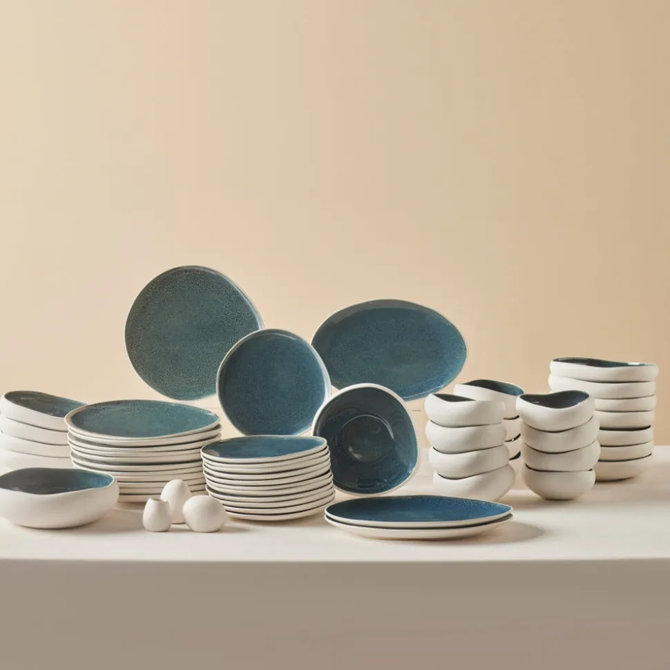 Dank der reaktiven und amorphen Formeigenschaften erhält jedes Teil ein einzigartiges Aussehen; so hebt sich jedes Geschirrset durch seine charakteristischen Farben und Muster hervor. Diese Einzigartigkeit verleiht Ihrem Tisch eine moderne und elegante Atmosphäre und sorgt bei jeder Nutzung für ein besonderes ästhetisches Erlebnis. Es ist eine besondere Wahl sowohl optisch als auch funktional.