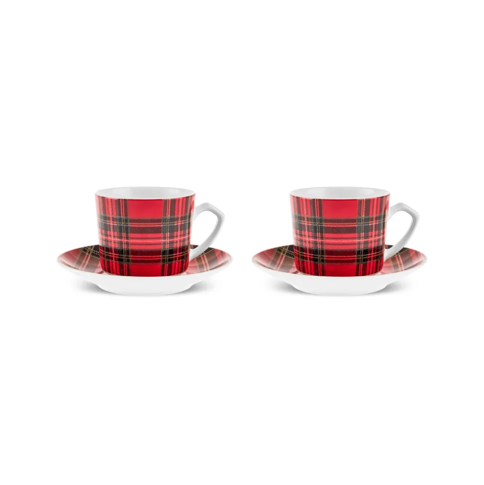 Karaca Ekose V2 4-teiliges Bone China Espresso Türkisch-Kaffeetassen-Set für 2 Personen, 80 ml, Rot
