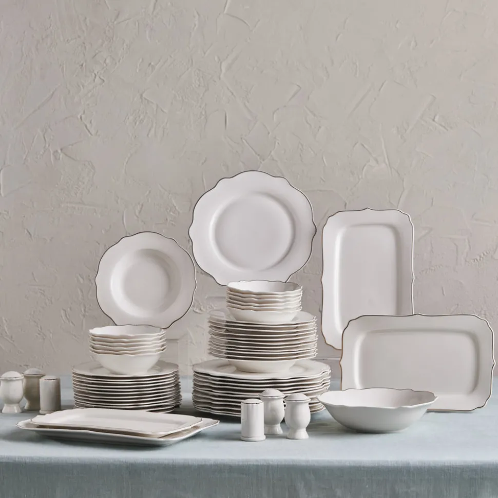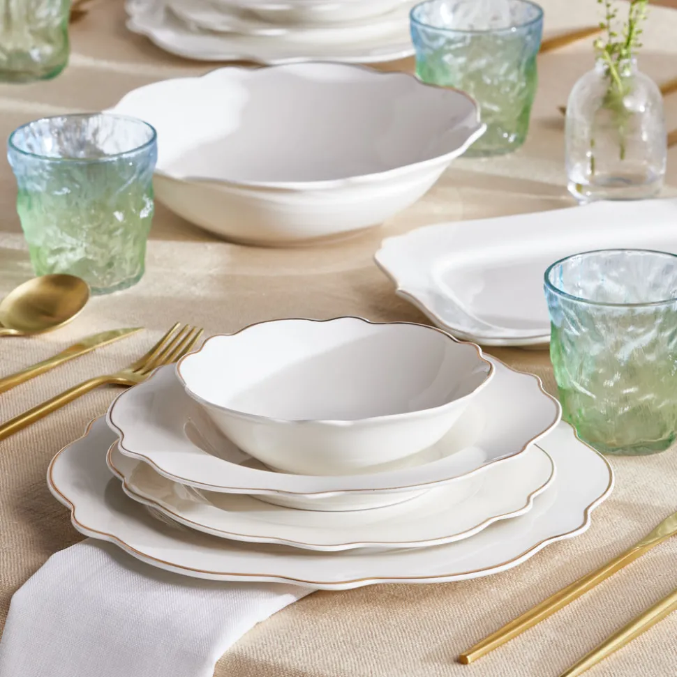 Erleben Sie luxuriöses Dinieren mit 12 großen Speisetellern (27,5 cm x 1,9 cm), 12 Pastatellern (21,7 cm x 3,3 cm), 12 Dessert-/Beilagentellern (21 cm x 1,7 cm), 12 Müslischalen (15,3 cm x 4,5 cm), 1 Salatschüssel (23 cm x 6 cm), 1 großer Servierplatte (35,5 cm x 2,5 cm) und 3 kleinen Servierplatten (30,5 cm x 2,5 cm). Ideal für Familienfeiern und besondere Anlässe.