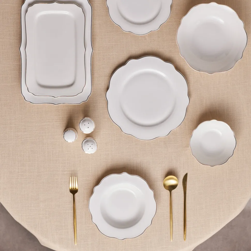 Karaca Vera Gold 59-teiliges Halb-Eckiges Porzellan-Geschirrset für 12 Personen, Gold