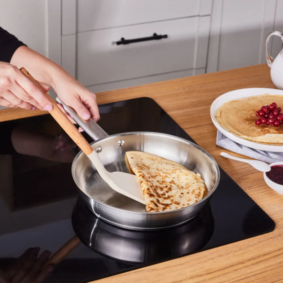 Die Produkte der Elite-Serie verbessern den Geschmack Ihrer Speisen durch eine gleichmäßige Wärmeverteilung. Die Edelstahloberfläche sorgt für eine gesunde und langlebige Nutzung und speichert die Wärme über einen langen Zeitraum. Die stilvollen Metallgriffe machen die Pfanne besonders praktisch. Geeignet für die Verwendung auf Induktionsherden.