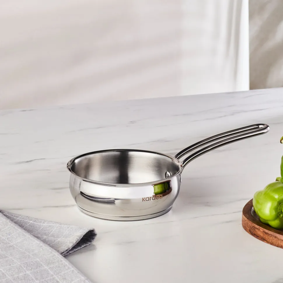 Er verhilft Ihnen zu einem perfekten Geschmack, indem er die Speisen gleichmäßig und gleichmäßig gart, indem er die Hitze gleichmäßig über die gesamte Fläche verteilt. Mit seinem speziellen Energiekapselboden, der die Wärme speichert, bietet er maximale Zeit- und Energieeinsparung. Dank seiner Struktur aus rostfreiem Stahl ist das Emirgan Steel Cookware Set langlebig und gesund. Die polierte Oberfläche bewahrt den Glanz. So wird es jahrelang in Ihrer Küche zu Gast sein und sein Aussehen vom ersten Tag an bewahren. Die Teflonbeschichtung im Inneren der Pfanne verhindert das Anhaften und Anbrennen der Speisen.