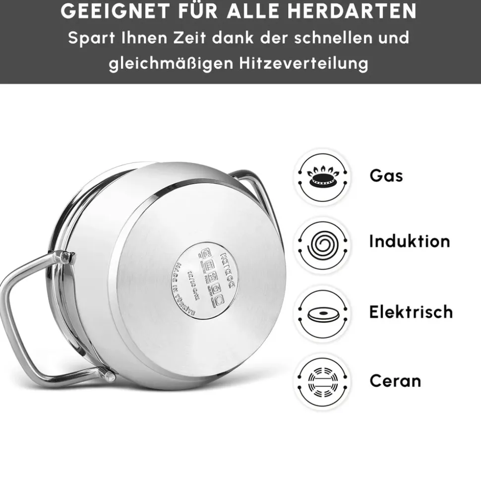 Dank seiner Struktur aus rostfreiem Stahl ist das Emirgan Steel Cookware Set langlebig und gesund.