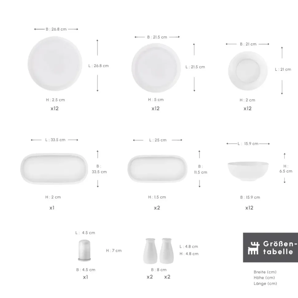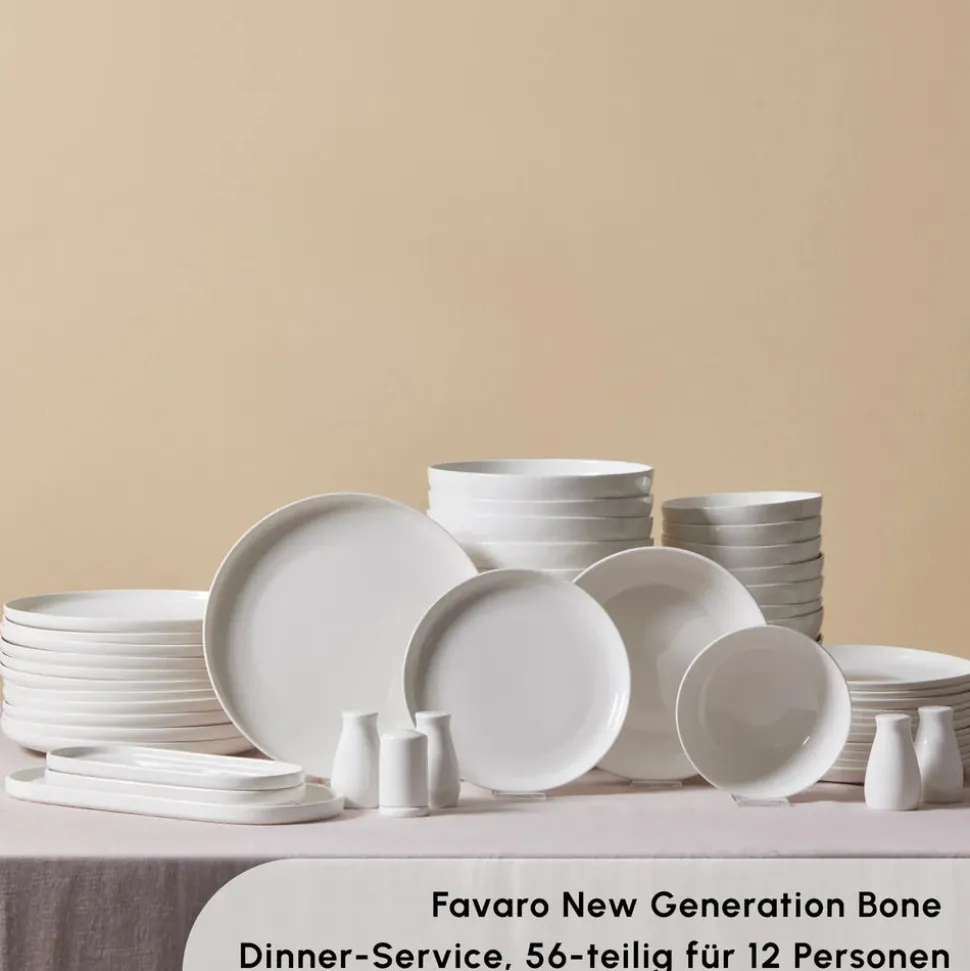 Karaca Favaro für 12 Personen Geschirrset, 56 Teilig, New Generation Bone