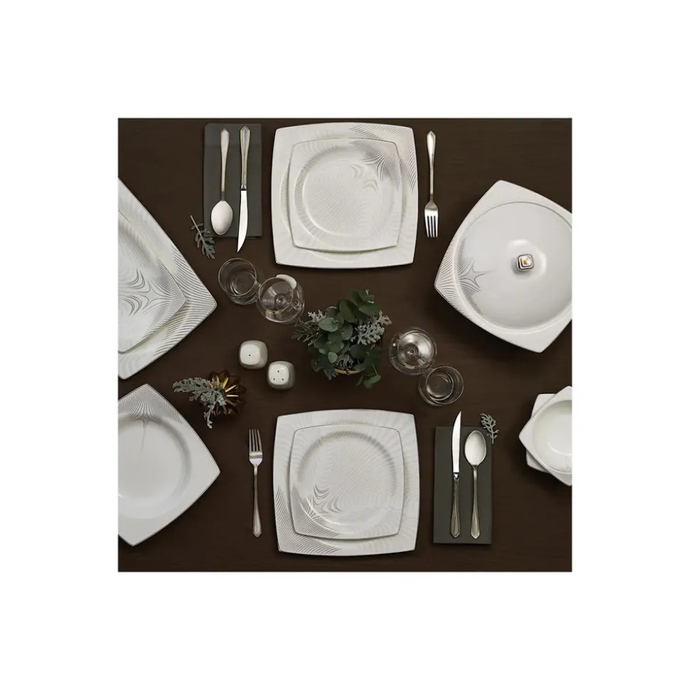 Karaca Square Bone Velora 53-teiliges Tafelservice für 12 Personen