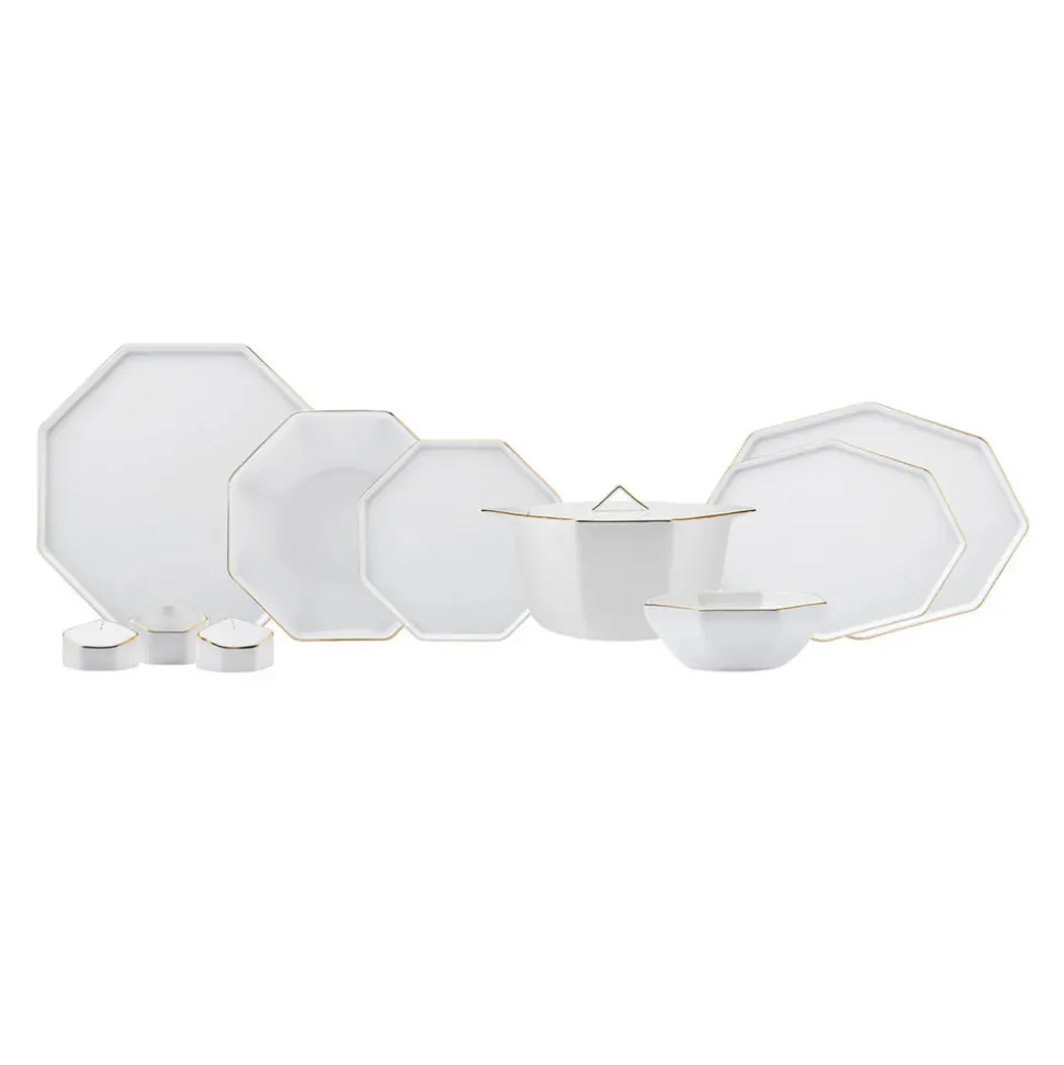 Karaca Fine Pearl Extra Eight Corner 62-Teiliges 12-Personen Geschirrset Gold