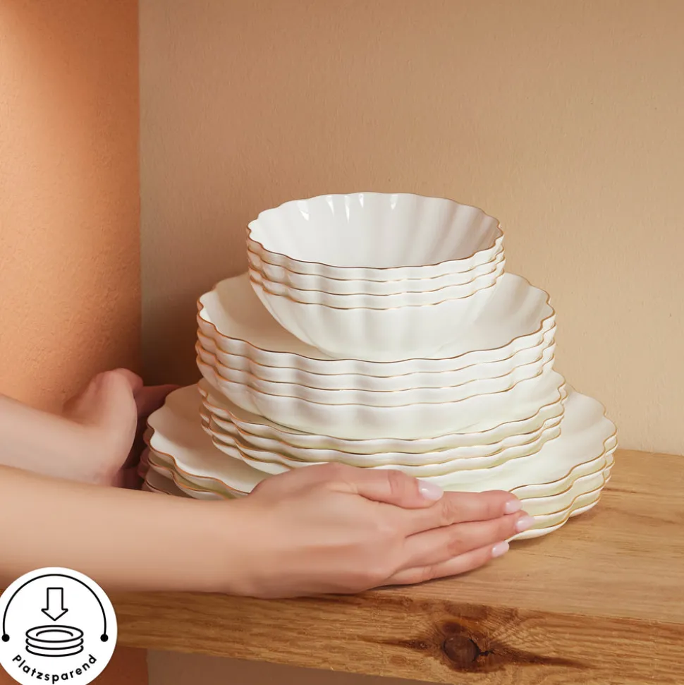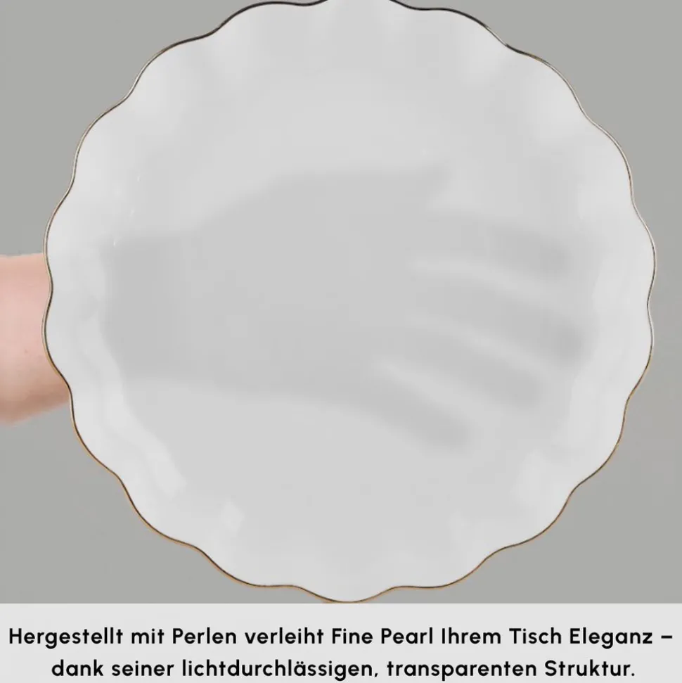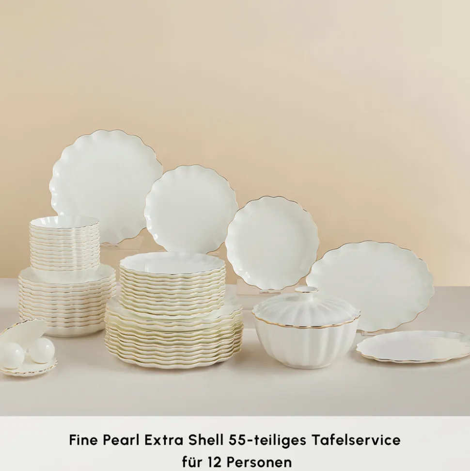 Karaca Fine Pearl Extra Shell 55-teiliges 12-Personen Geschirrset Gold
