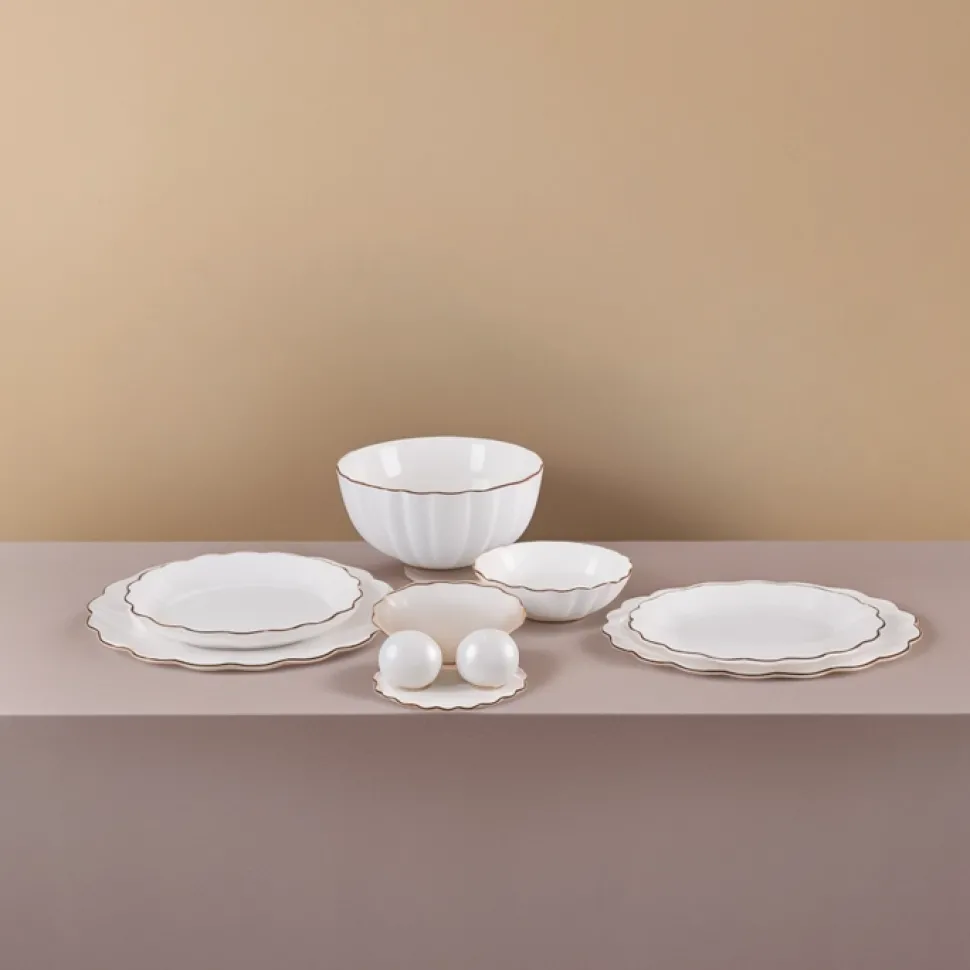 Karaca Fine Pearl Extra SheFine Pearl Extra: Extra dünn, extra Perle… In Karaca’s Fine Pearl Serie, die die Feinheiten eines Kunstwerkes trägt, wurden mehr Perlen verwendet und Fine Pearl Extra entstand. Fine Pearl Extra enthält doppelt so viele Perlen und bringt dünnere und haltbarere Stücke auf Ihre Tische. Die Serie, die durch die dünnere Form von Fine Pearl transparent genug wird, um Licht durchzulassen, erhält eine einzigartige Eleganz. Sie wird zweimal bei einer speziellen Temperatur gebrannt, was ihre Haltbarkeit und Dünnheit erhöht, und ihre Muster werden dauerhafter.