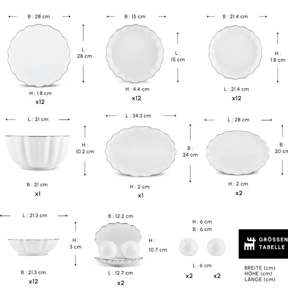 Karaca Fine Pearl Extra Shell 58-teiliges 12-Sitzer Tafelservice Gold