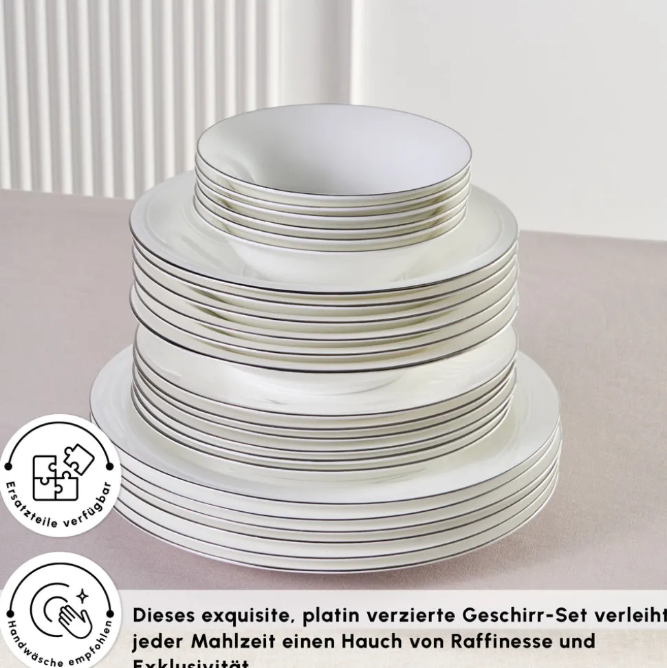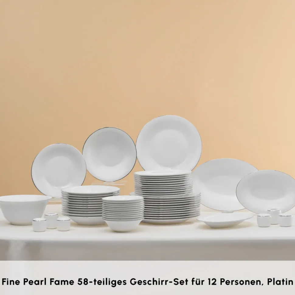 Karaca Fine Pearl Fame 58-teiliges Tafelservice für 12 Personen, Platin
