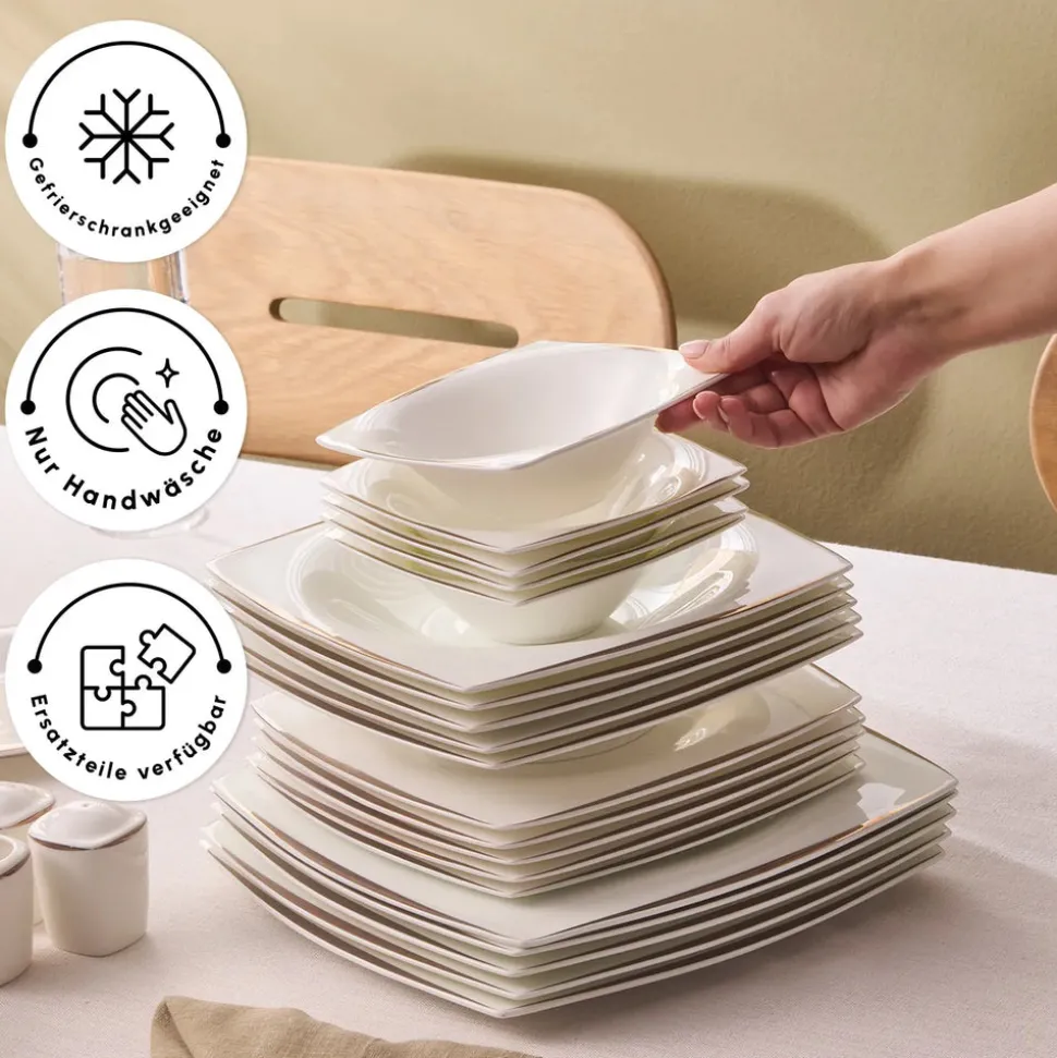 Karaca Fine Pearl New Agate 58-Teiliges 12-Personen Geschirrset Gold