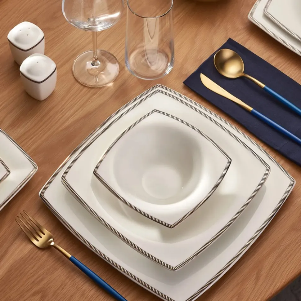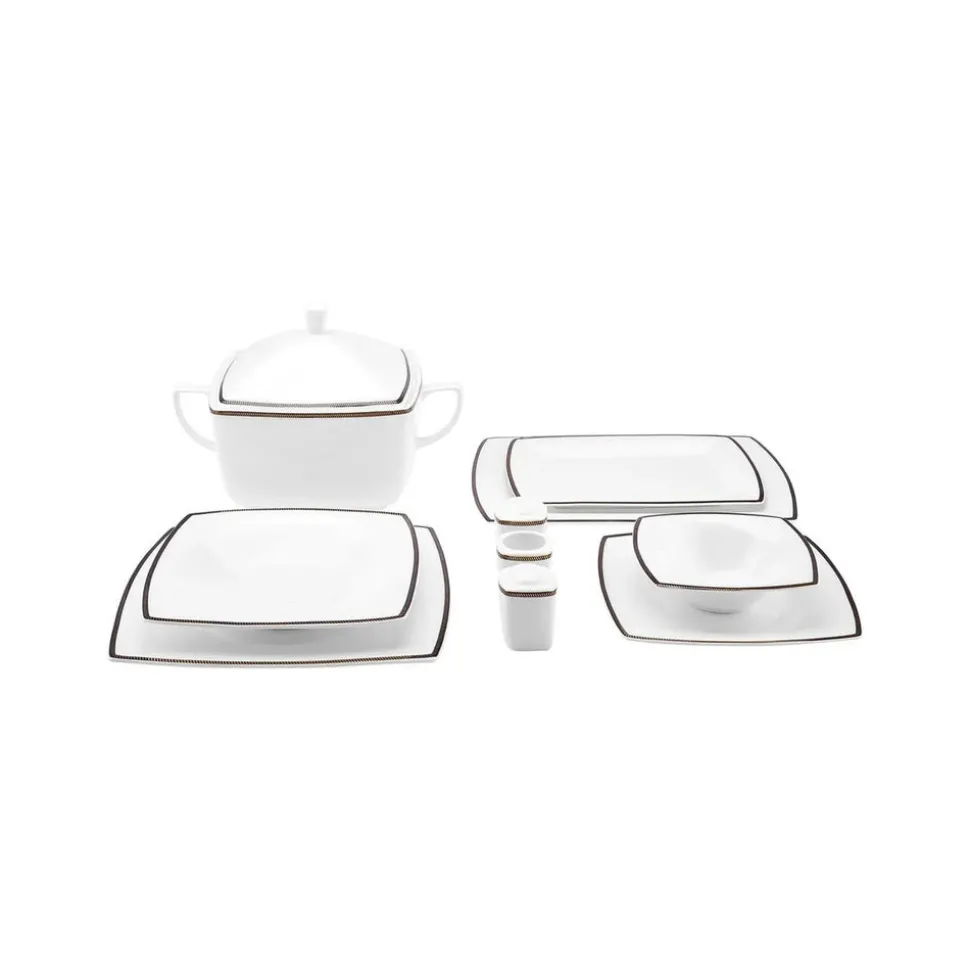 Karaca Fine Pearl Norma 62-teiliges quadratisches Tafelservice für 12 Personen